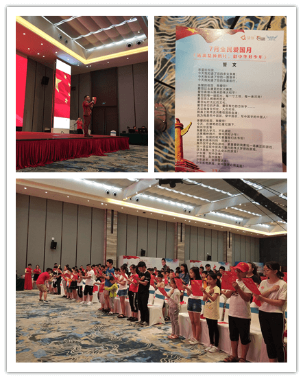 润阳老师用社会上的真人真事,向全场剖析游戏的危害,引发出在场孩子戒除游戏的决心!并在润阳老师的带领下,孩子们一起宣读爱国宣言!
